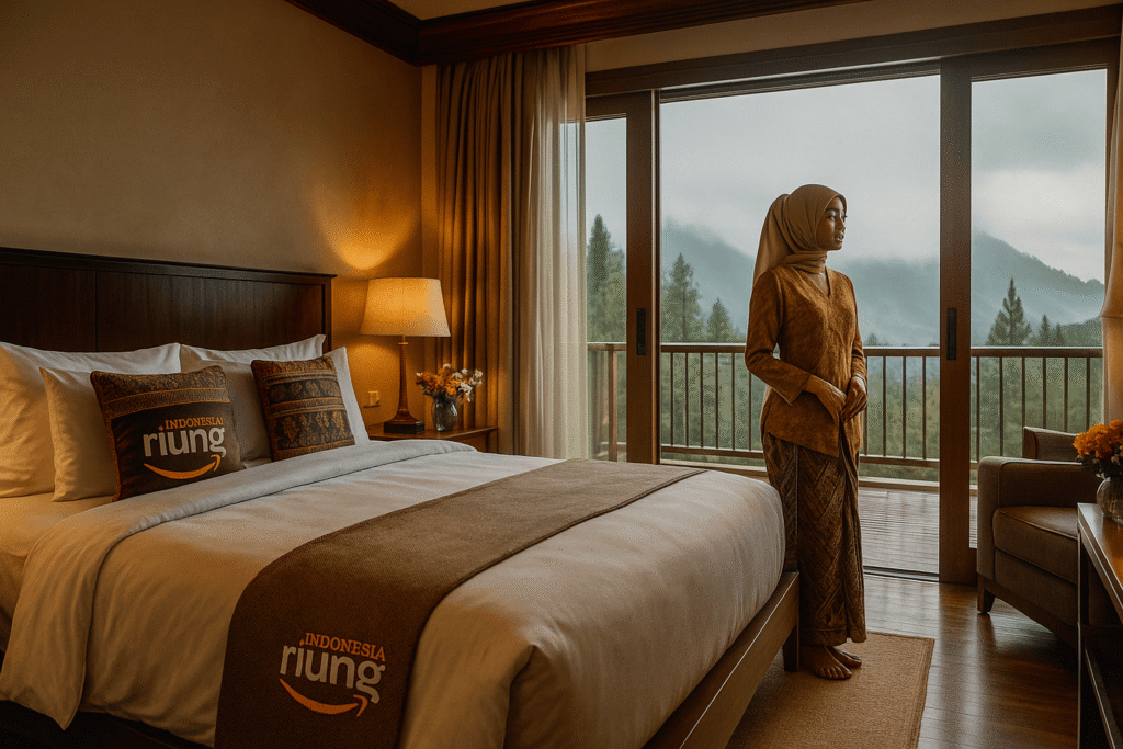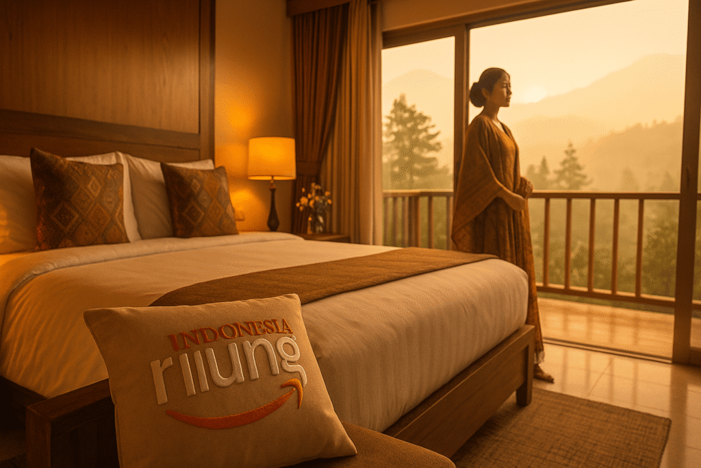 Eksplor Hotel Riung Indonesia kawasan Bogor Raya: kamar nyaman, view pegunungan, cocok untuk MICE, outing tim, dan liburan keluarga; atmosfer elegan, pelayanan sigap, sarapan lezat.